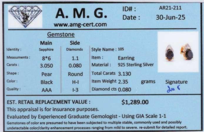 3.13 CTW Natural Black Sapphire & Diamond 18K Gold Plated Designer Earrings | Estimated Value $1,289 (AMG)