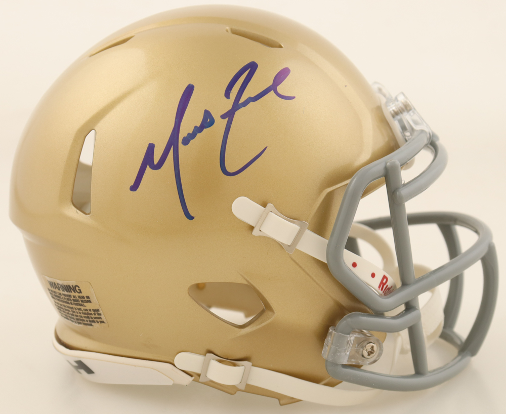 Riddell Notre Dame Fighting Irish speed mini helmet has been hand-signed by Marcus Freeman.