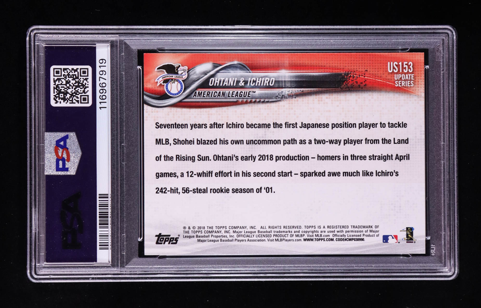 Shohei Ohtani RC / Ichiro Suzuki 2018 Topps Update #US153 Japan's Finest (PSA 10)