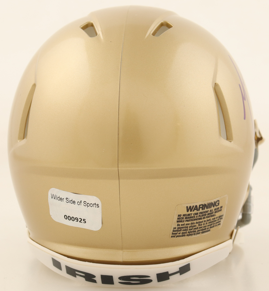 Riddell Notre Dame Fighting Irish speed mini helmet has been hand-signed by Marcus Freeman.