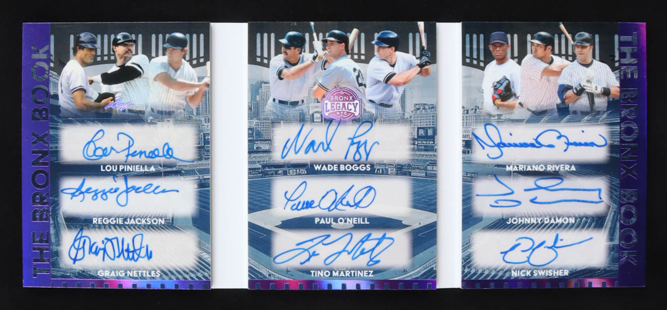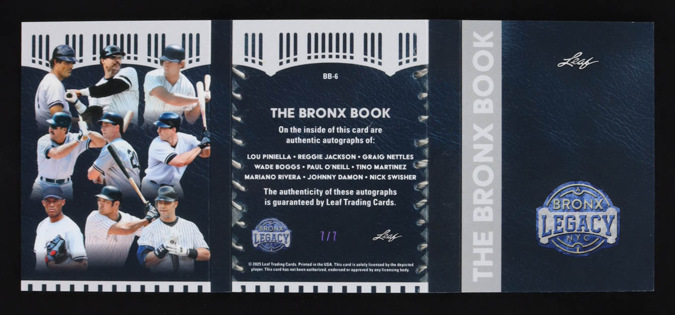 2025 Leaf Bronx Legacy NYC The Bronx Book Purple Autographs #BB-6 #7/7 Lou Piniella / Reggie Jackson / Graig Nettles / Wade Boggs / Paul O'Neill / Tino Martinez / Mariano Rivera / Johnny Damon / Nick Swisher