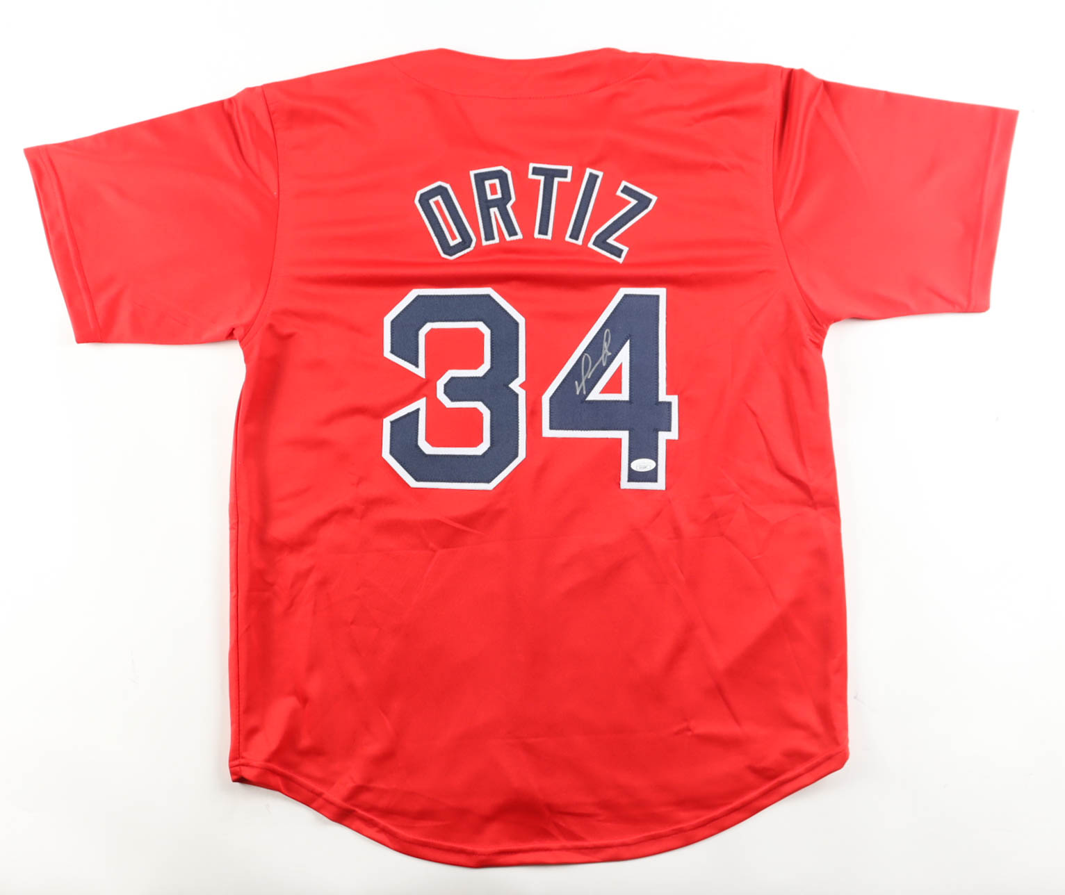 Custom jersey with everything sewn on, size XL. Hand-signed by David Ortiz (HOF).