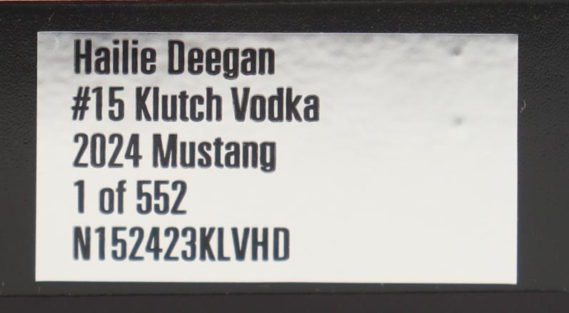The #15 Klutch Vodka 2024 Ford Mustang is a limited edition of just 552 produced and includes the original packaging.