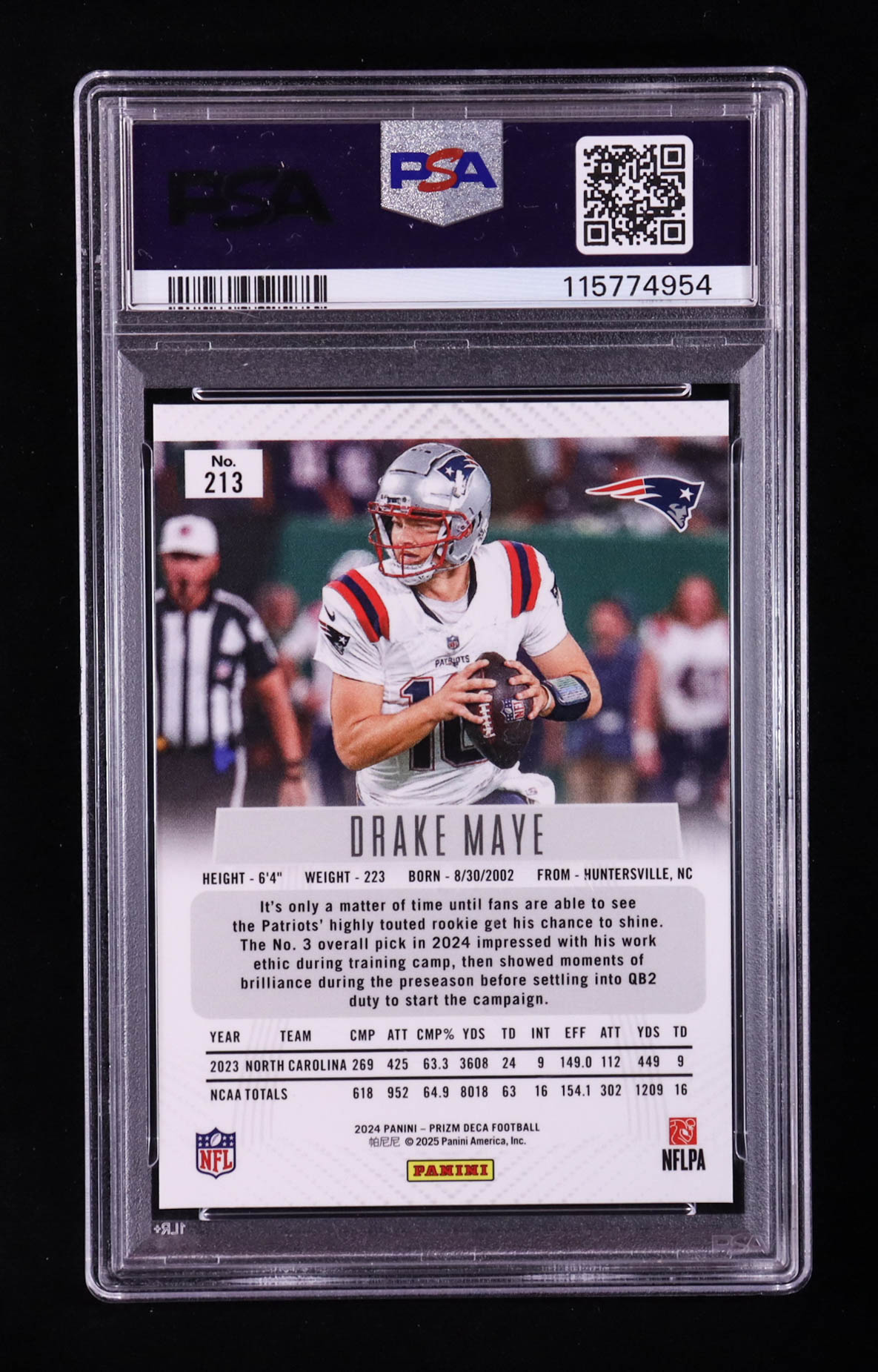Drake Maye 2024 Panini Prizm Deca #213 RC (PSA 9)