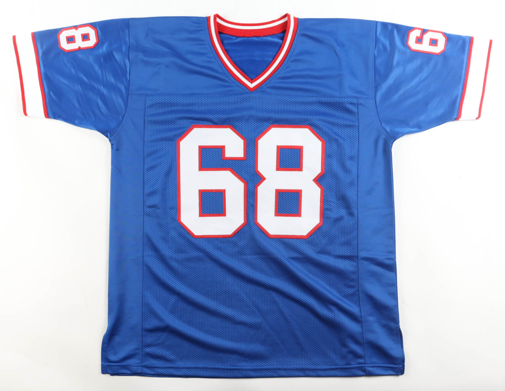 Custom jersey with everything sewn on, size XL. Hand-signed and inscribed by Joe DeLamielleure (HOF). Please note, the signature and inscription have bled.