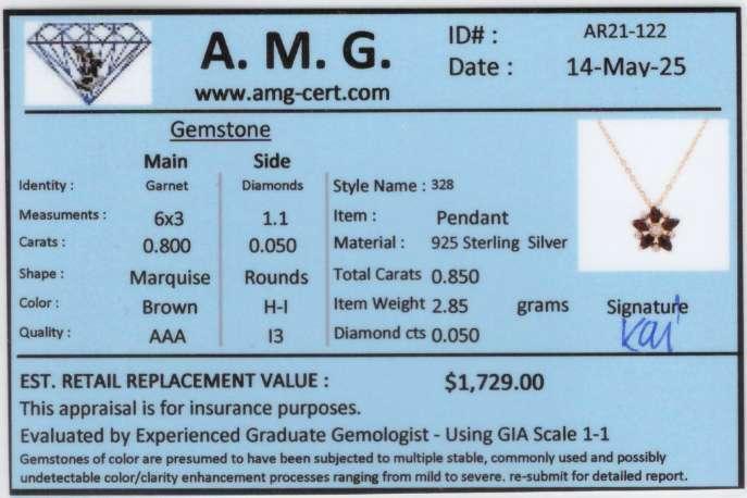0.85 CTW Natural Garnets & Diamonds 18K Gold Plated Designer Pendant 18 in | Estimated Retail Price: $1,729 (AMG)