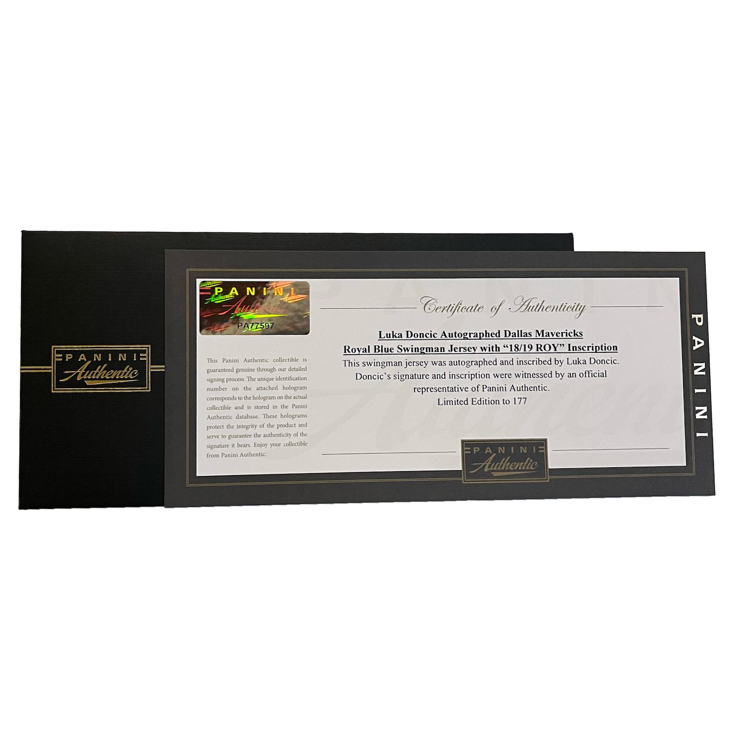 Luka Doncic Signed LE Mavericks Nike Authentic Jersey Inscribed "18/19 ROY" (Panini)