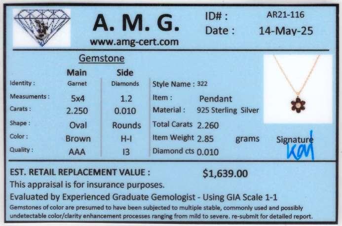 2.26 CTW Natural Garnet & Diamonds 18K Gold Plated Designer Pendant 18 in | Estimated Retail Value: $1,639 (AMG)