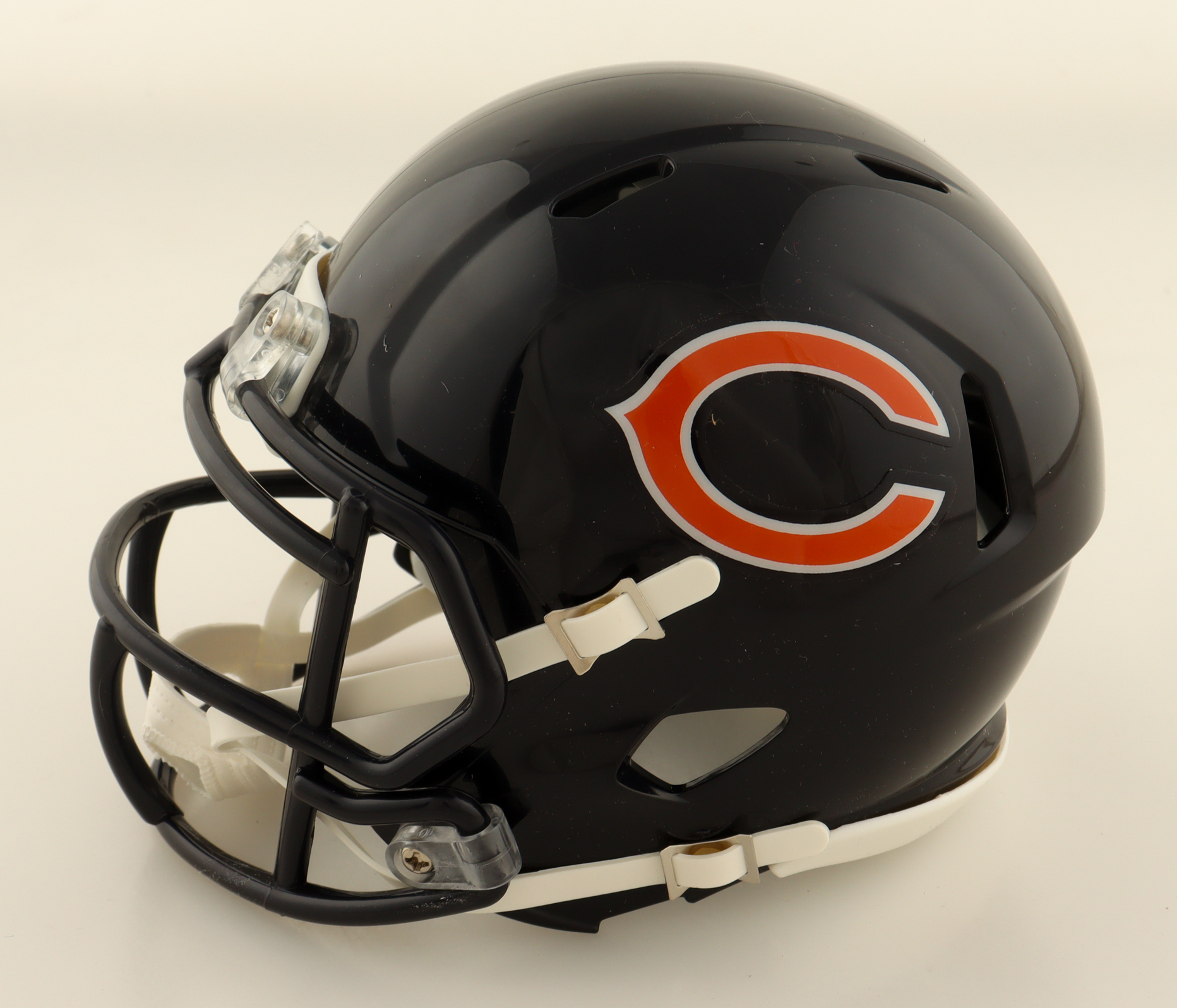 Riddell Chicago Bears Speed Mini Helmet. Hand-signed by Kyle Monangai and D'Andre Swift.