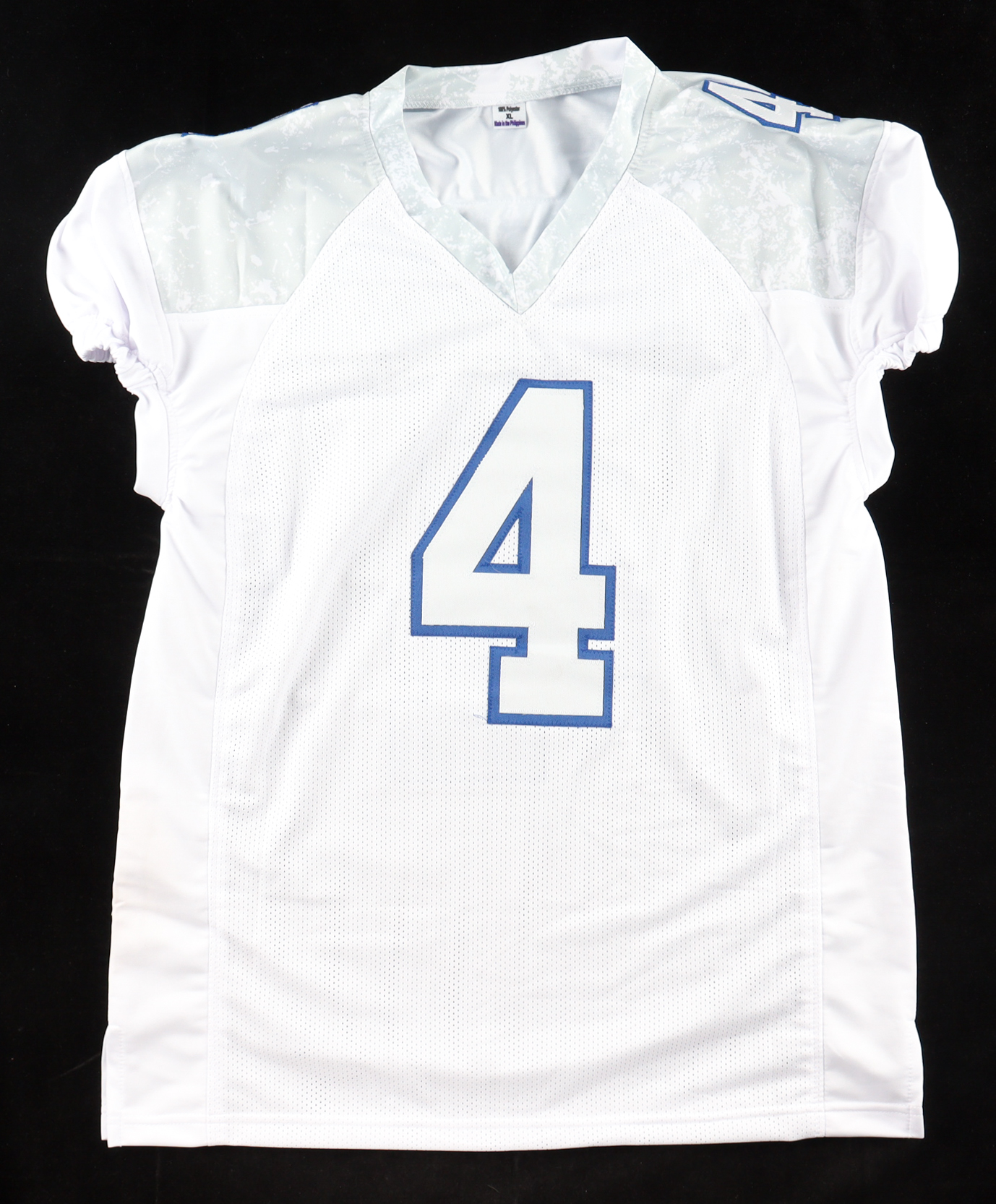 Custom jersey with everything sewn on, size XL. Hand-signed by James Cook.