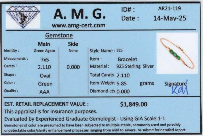 2.11 CTW Natural Green Agate 18K Gold Plated Designer Bracelet | Estimated Retail Value: $1,849 (AMG)