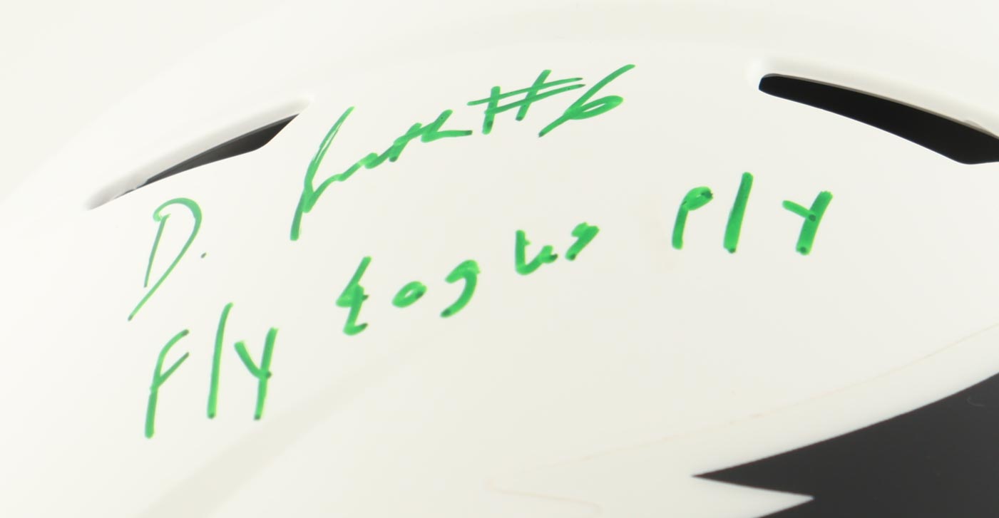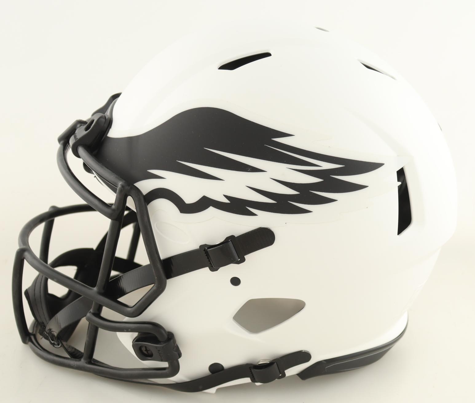 Riddell Philadelphia Eagles full-size Authentic On-Field Lunar Eclipse Alternate speed helmet. Hand-signed and inscribed by Devonta Smith.