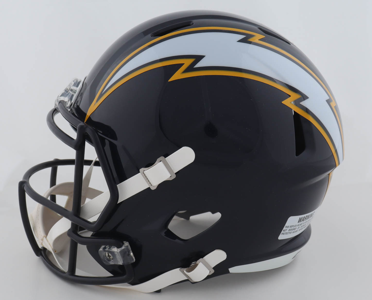 Riddell Los Angeles Chargers Full-Size speed replica helmet has been hand-signed by Ladd McConkey.
