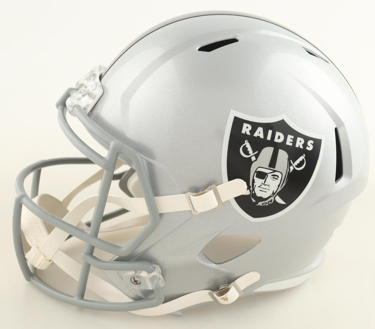 Riddell Las Vegas Raiders full-size replica Speed helmet. Hand-signed and inscribed by Charles Woodson.