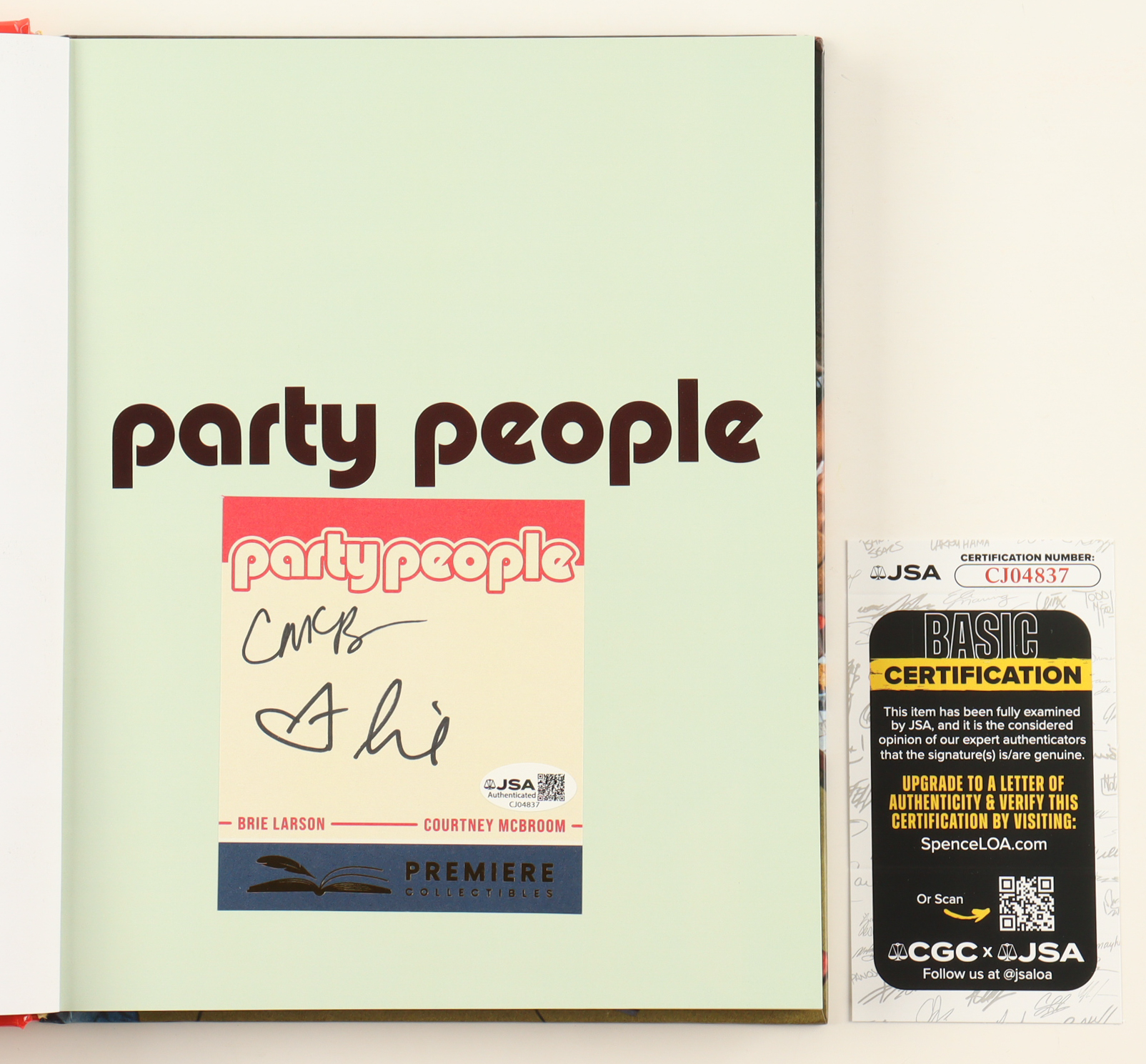 "Party People" Cookbook has been hand-signed by Brie Larson and Courtney McBroom.