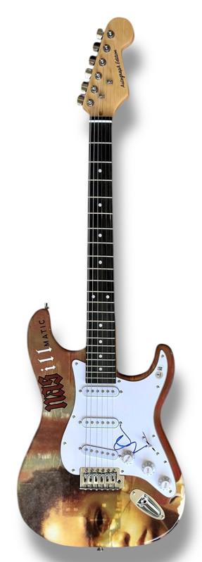 Custom Autograph Edition Stratocaster style electric guitar measures approximately 39" in length and has been hand-signed on the pickguard by Nas.