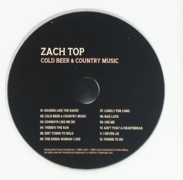 Custom frame measures approximately 8" x 13.5" in size. Features a "Cold Beer & Country Music" CD that has been hand-signed by Zach Top. The display also includes the album insert as shown.