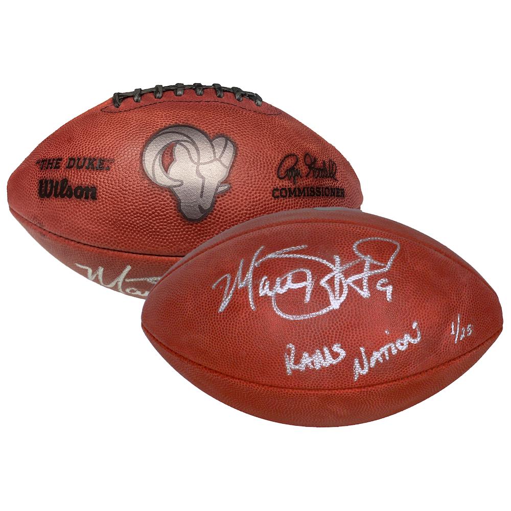 Wilson Official NFL "The Duke" Game Ball Los Angeles Rams metallic logo football. Hand-signed by Matthew Stafford. This item is limited edition and has been hand-numbered #1/25.