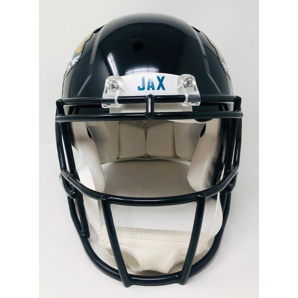 Riddell Jacksonville Jaguars full-size authentic on-field speed helmet. Hand-signed by Trevor Lawrence.