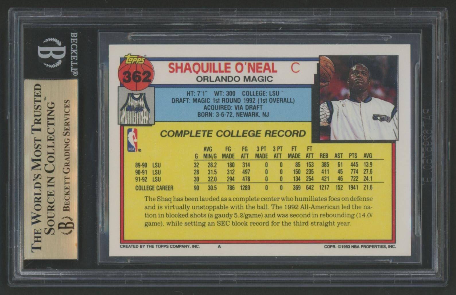 Shaquille O'Neal 1992-93 Topps #362 RC (BGS 9.5)