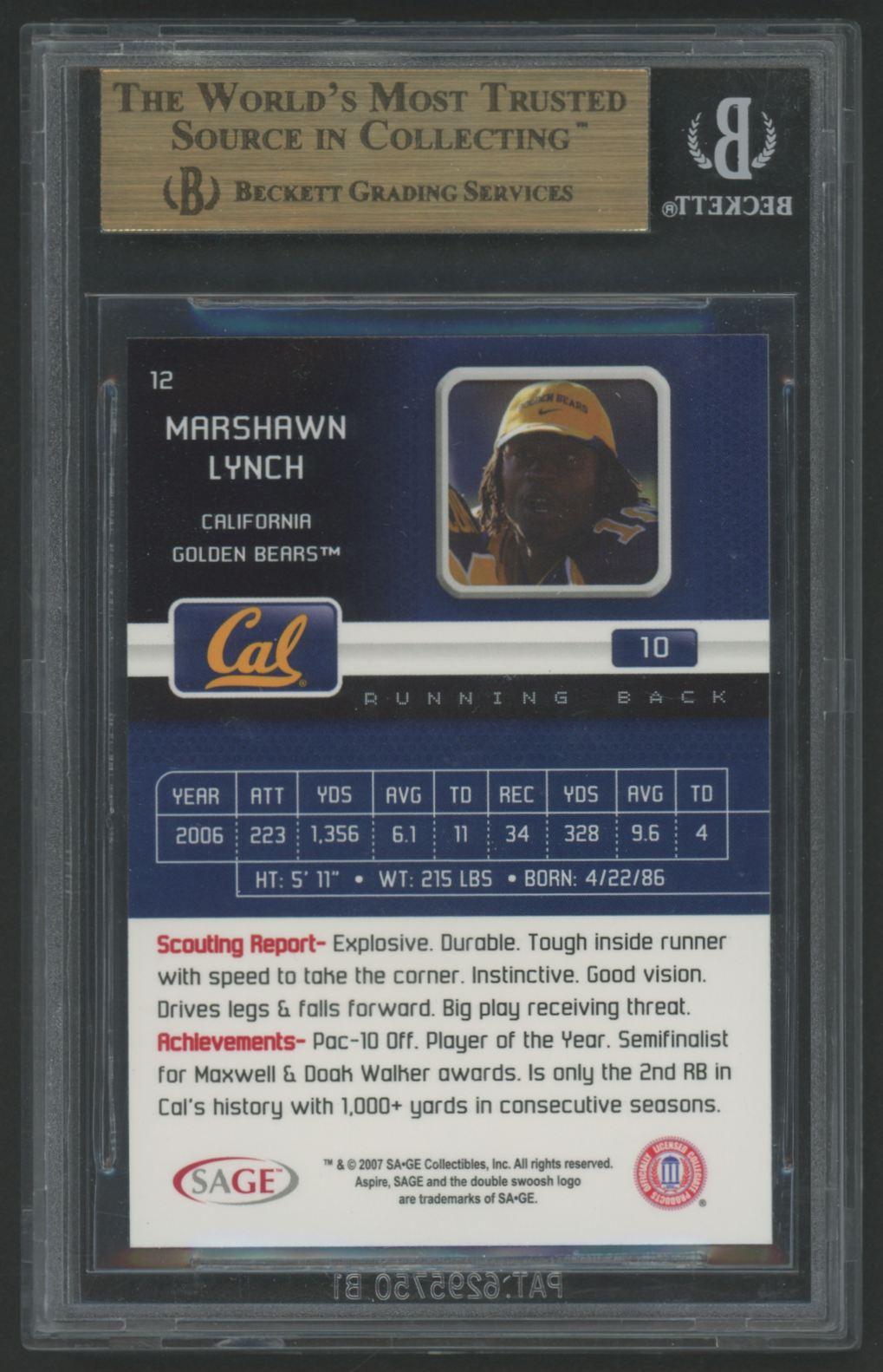Marshawn Lynch 2007 Aspire #12 (BGS 9.5)