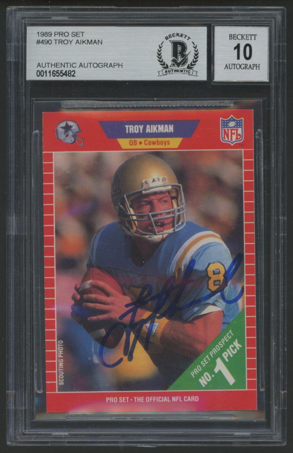 Troy Aikman Signed 1989 Pro Set #490 RC (BGS | Auto 10)
