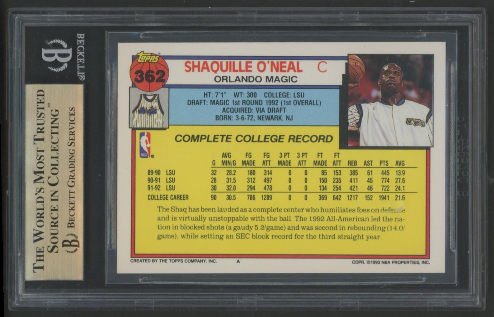 Shaquille O'Neal 1992-93 Topps #362 RC (BGS 9.5)
