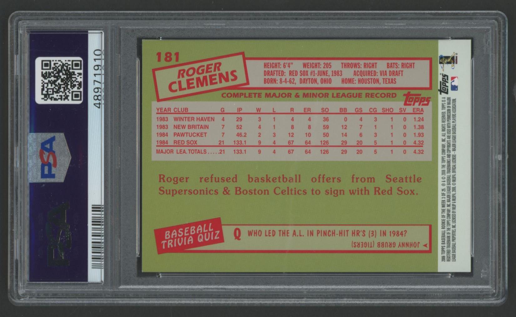 Roger Clemens 2006 Topps Rookie of the Week 85 #3 (PSA 9)