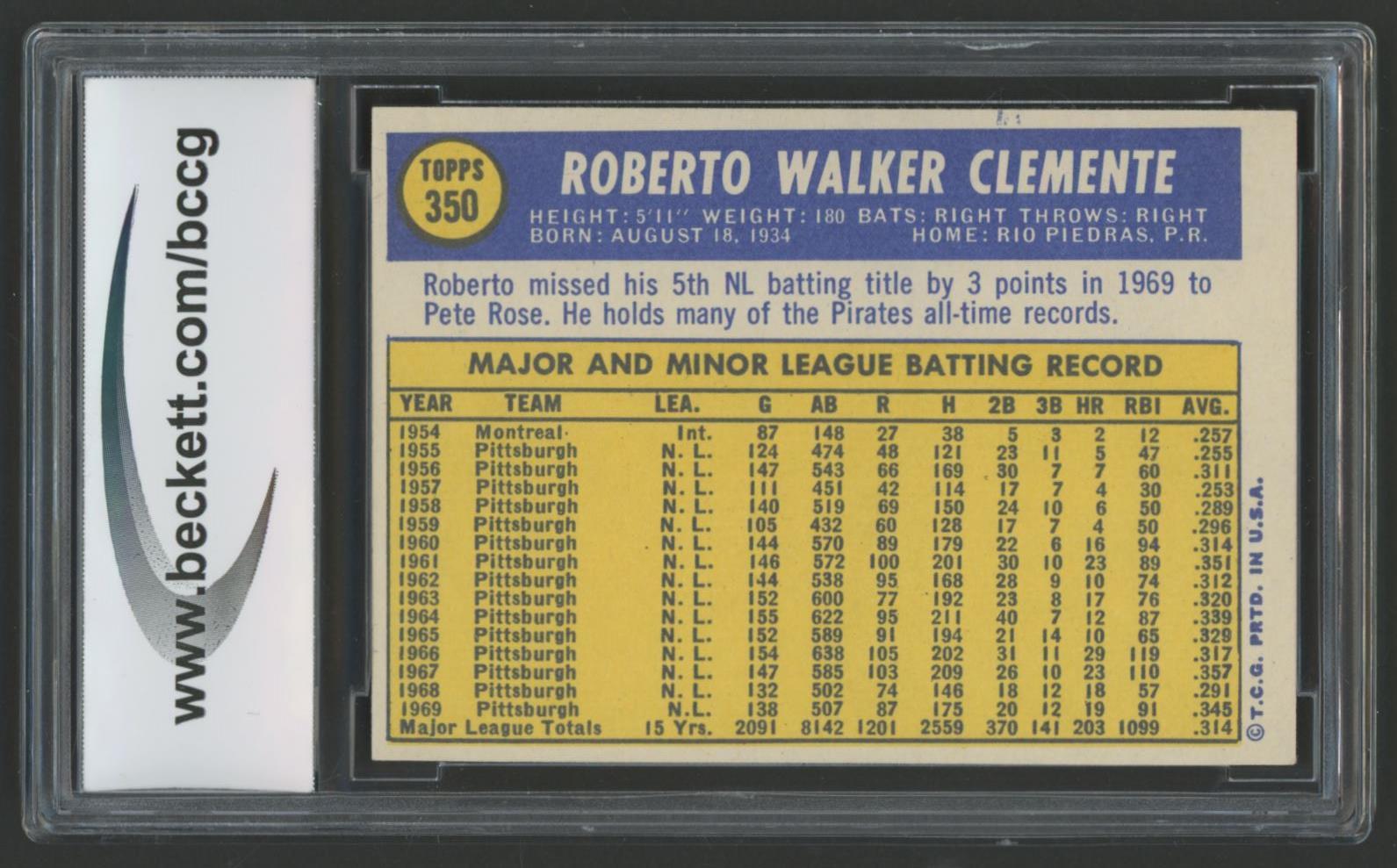 Roberto Clemente 1970 Topps #350 (BCGG 9)