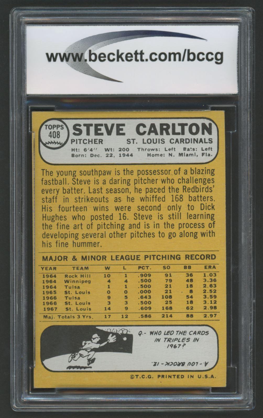 Steve Carlton 1968 Topps #408 (BCCG 8)