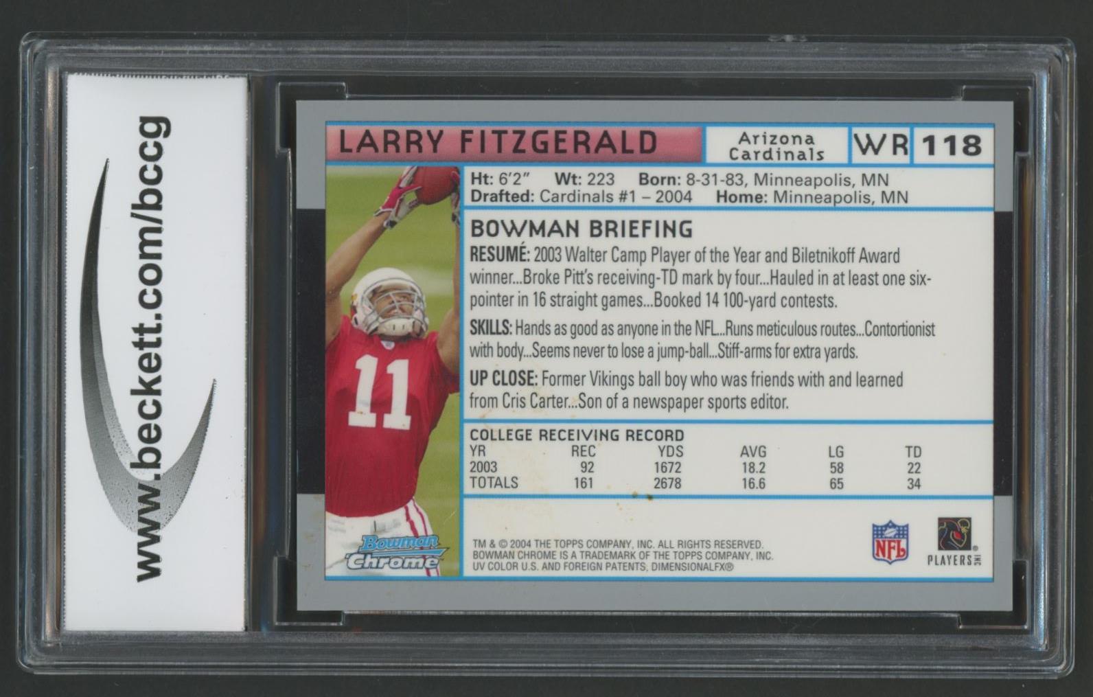 Larry Fitzgerald 2004 Bowman Chrome #118 RC (BCCG 10)