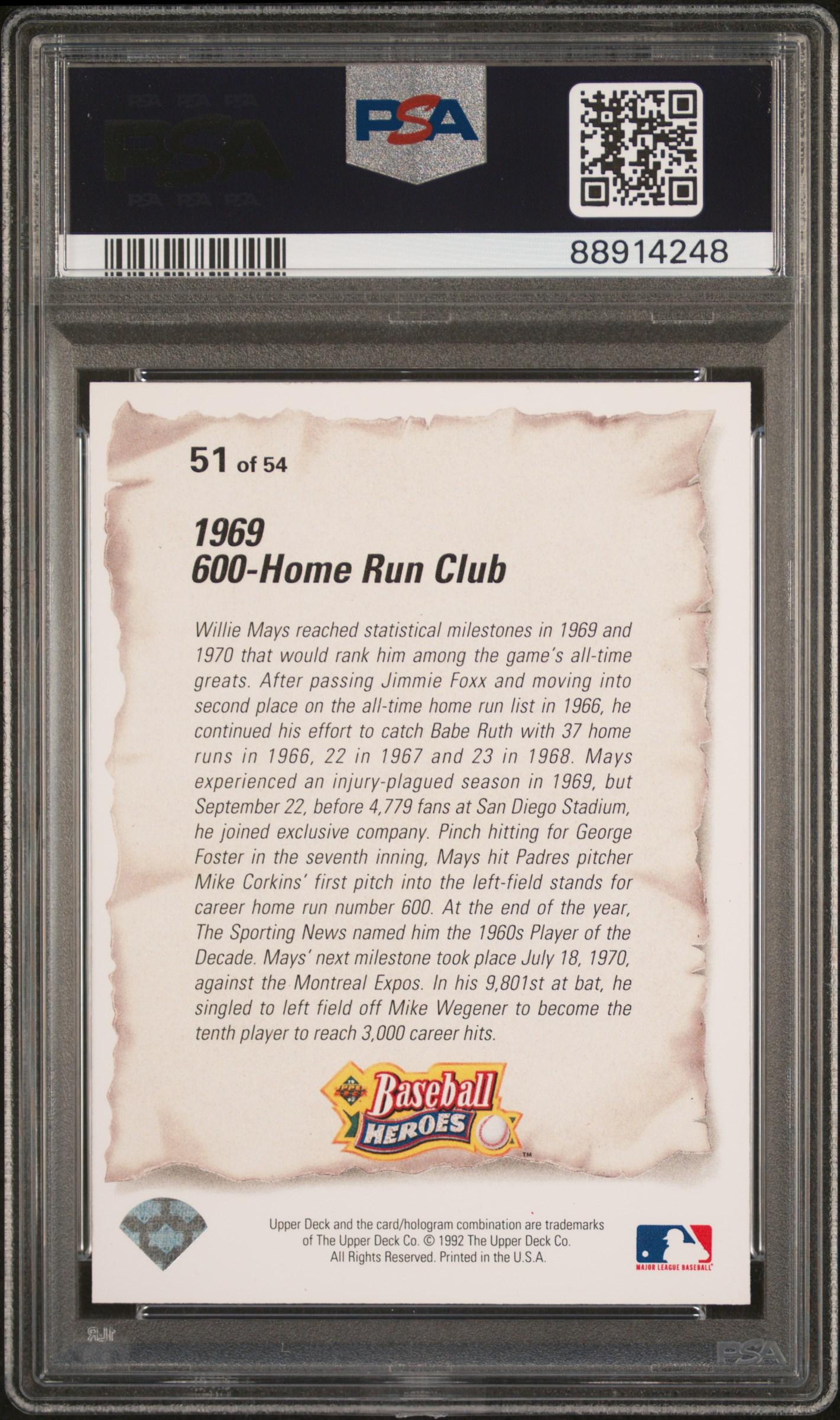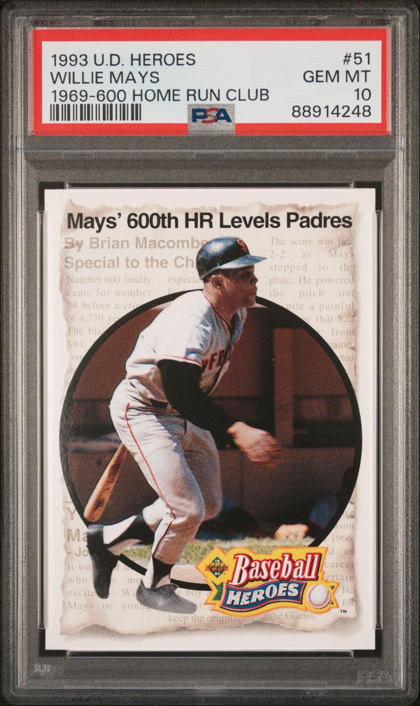 Willie Mays 1993 Upper Deck Heroes 1969-600 Home Run Club #51 (PSA 10)