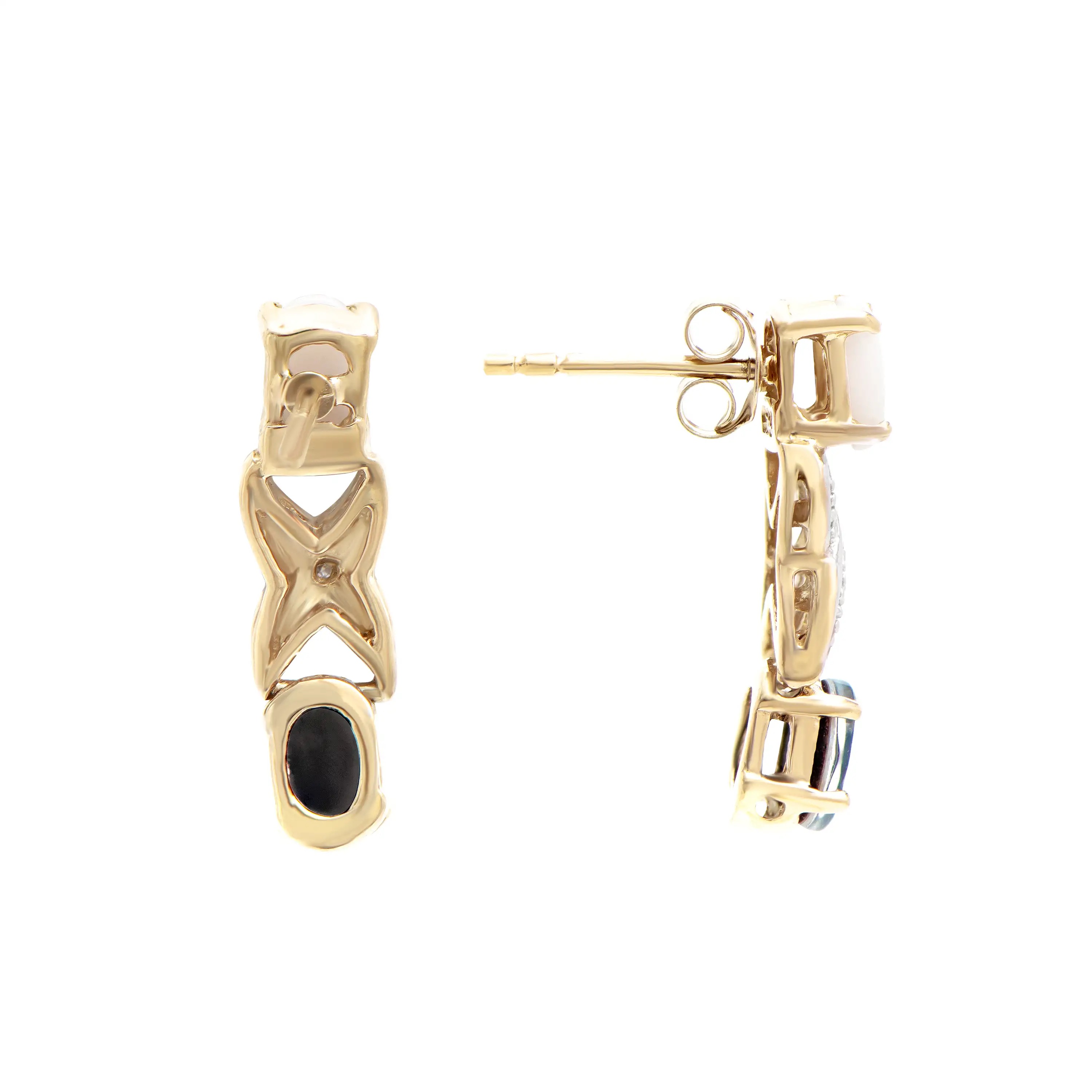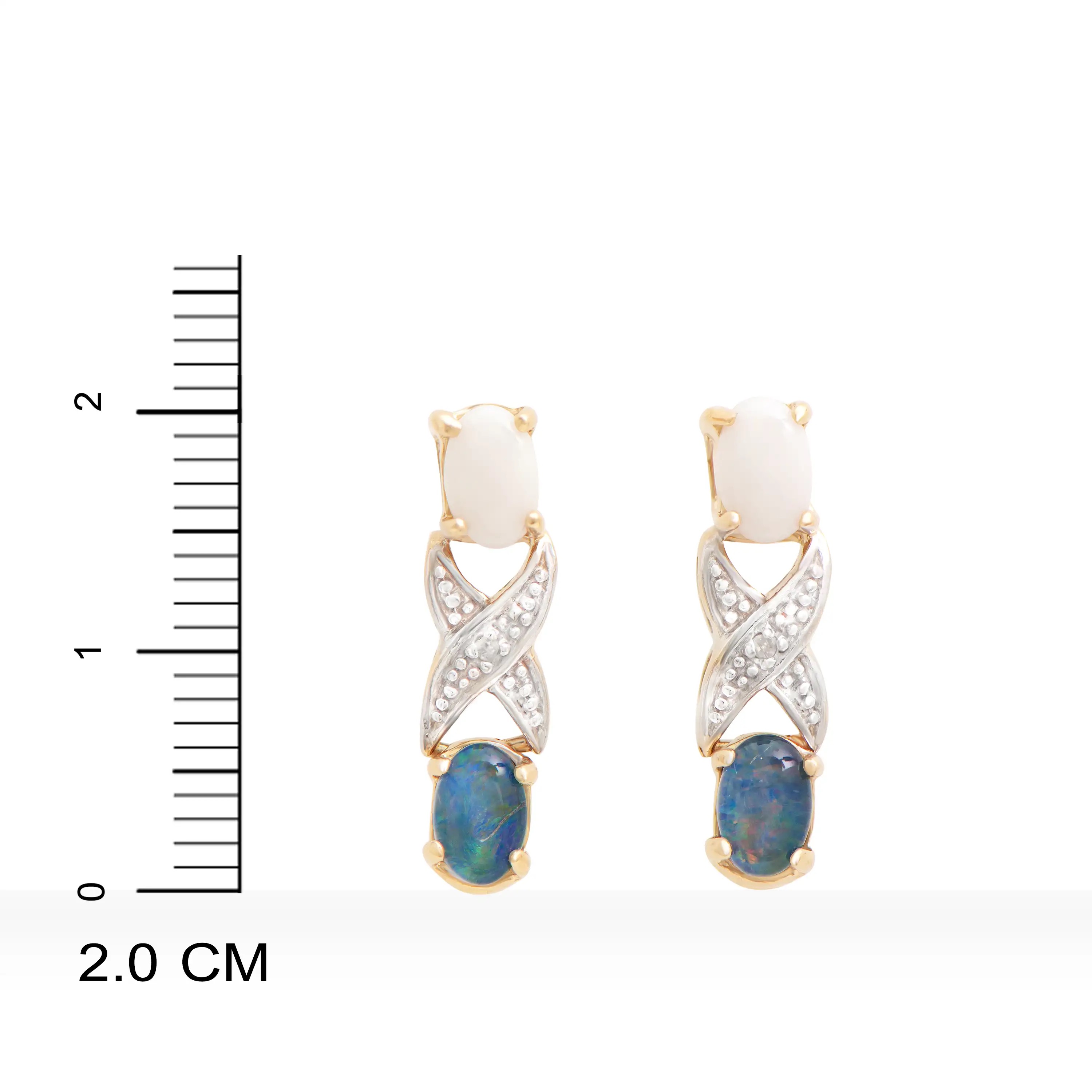 1.04 CTW Natural Opals & Diamonds 18K Gold Plated Designer Earrings (2.55 grams) Contains:
