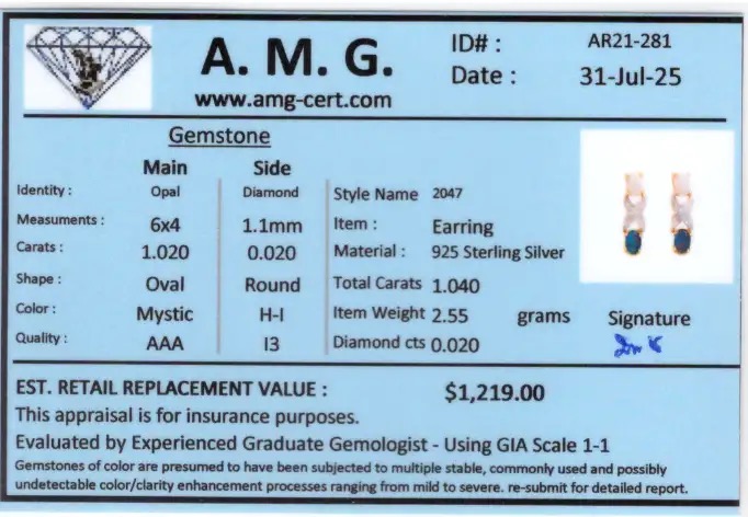 1.04 CTW Natural Opals & Diamonds 18K Gold Plated Designer Earrings | Estimated Retail Value: $1,219 (AMG)