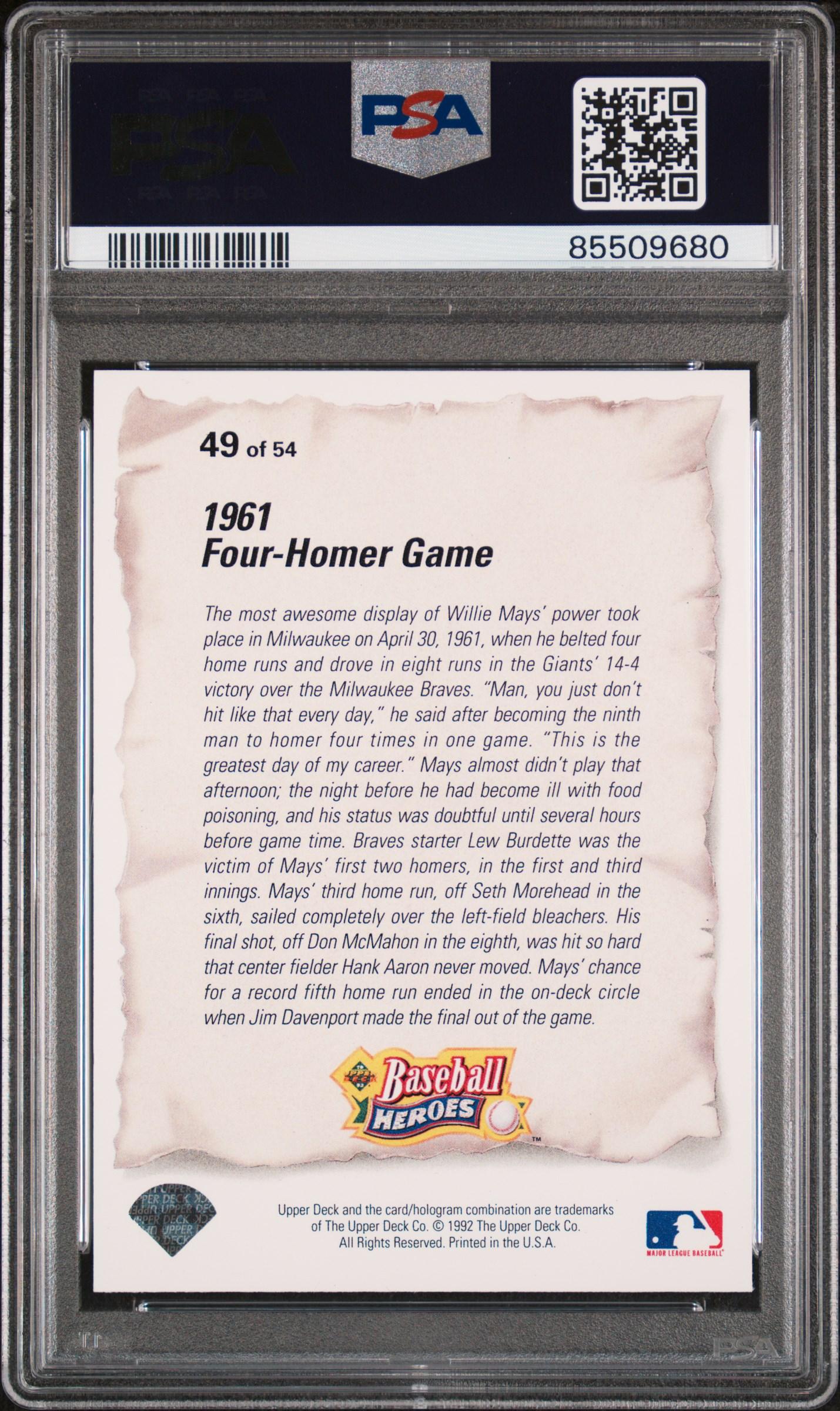Willie Mays 1993 Upper Deck Mays Heroes #49 (PSA 10)
