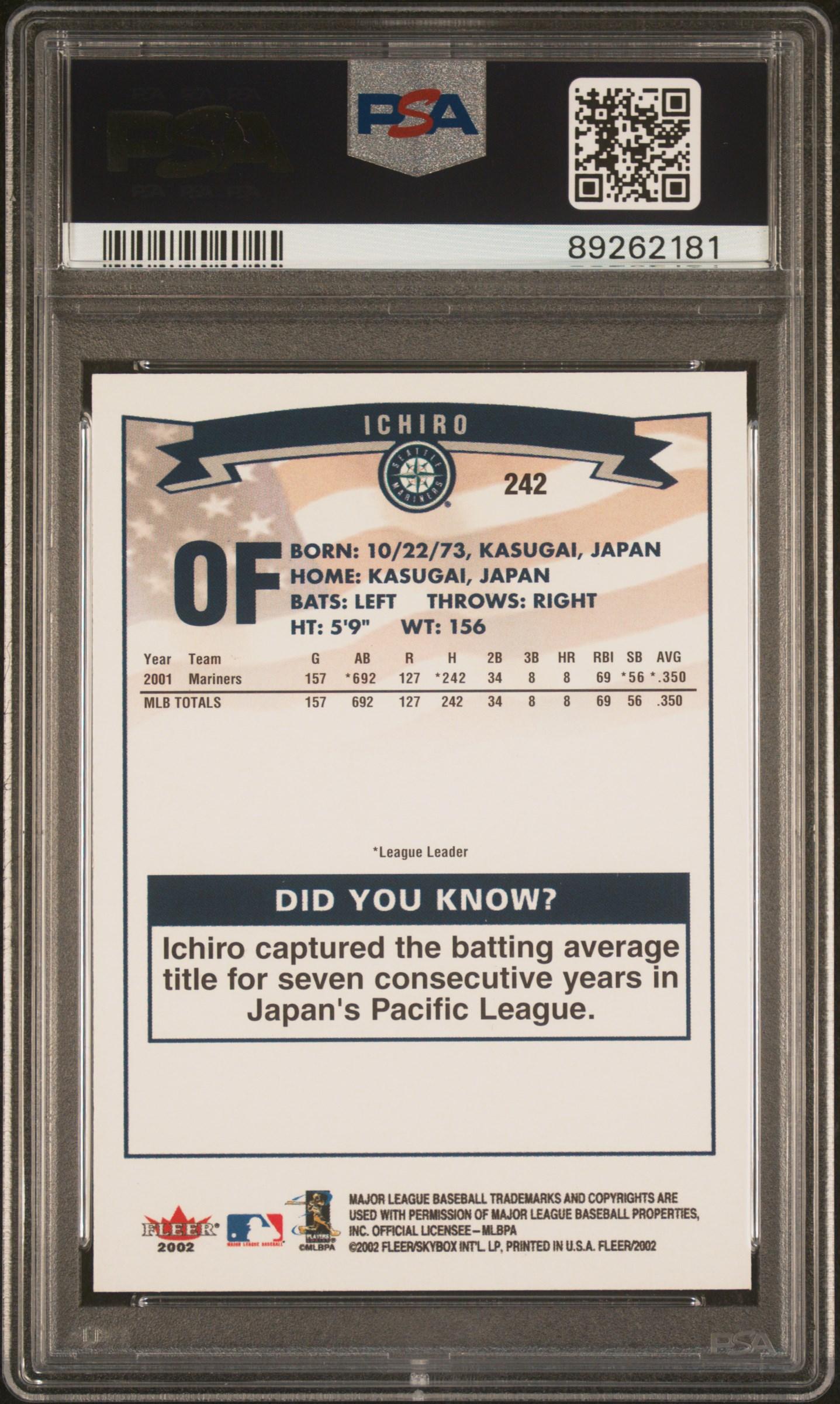 Ichiro Suzuki 2002 Fleer #242 (PSA 10)