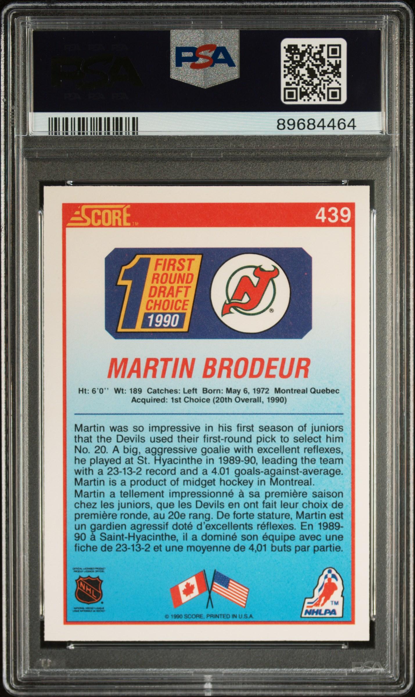 Martin Brodeur 1990 Score Canadian #439 RC (PSA 9)