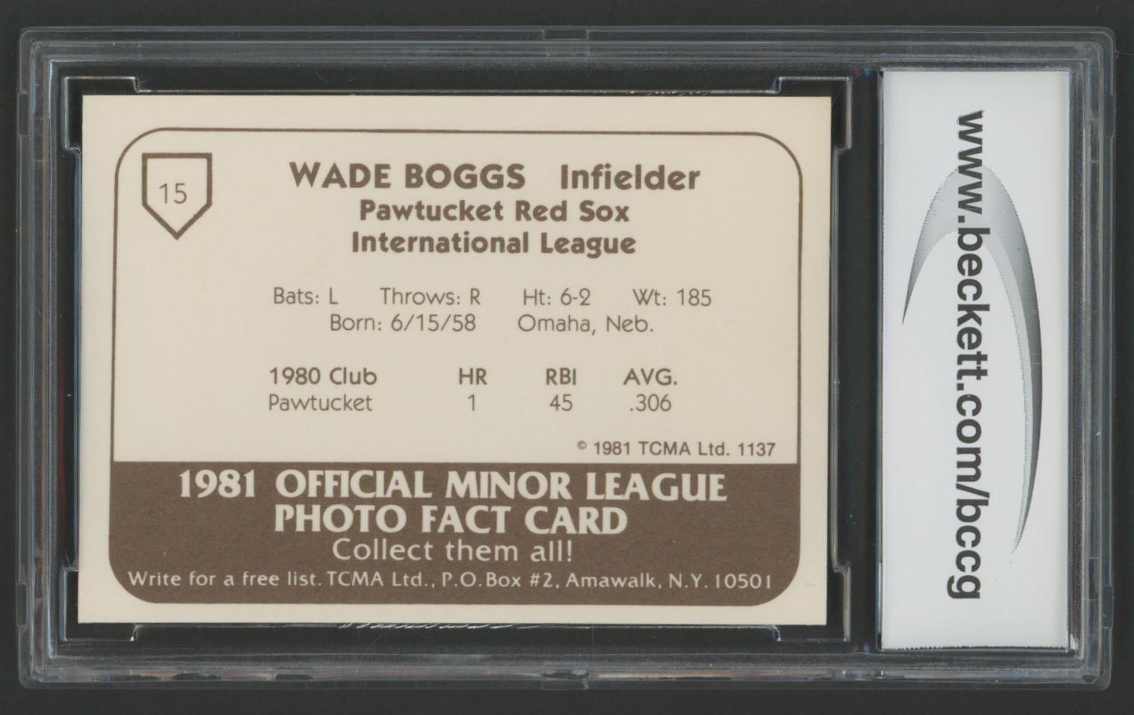Wade Boggs 1981 Pawtucket Red Sox TCMA #15 (BCCG 10)