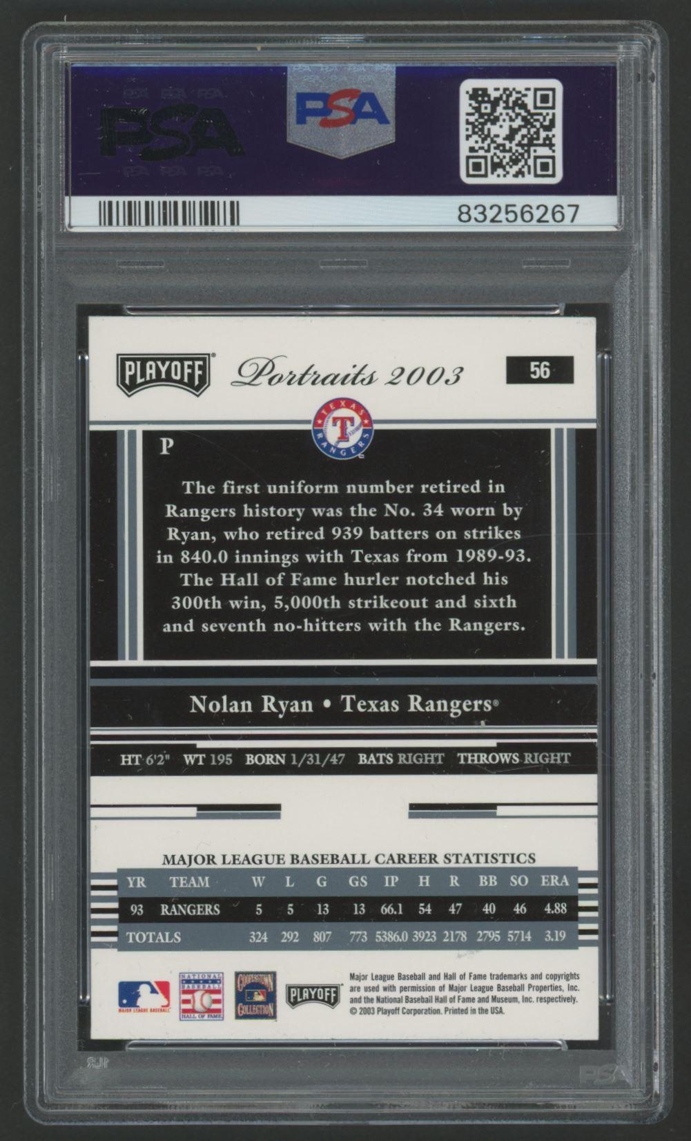 Nolan Ryan 2003 Playoff Portraits #56 (PSA 10)
