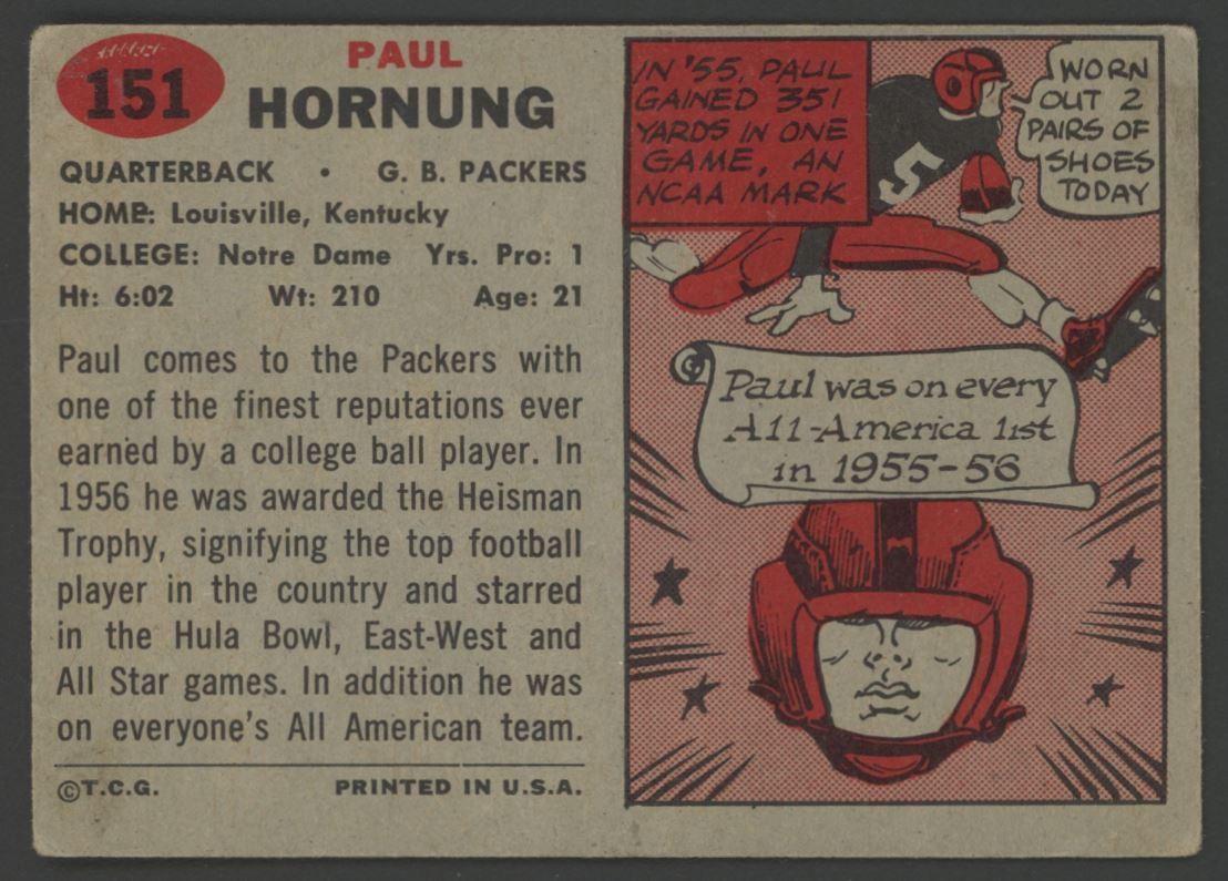 Paul Hornung 1957 Topps #151 RC