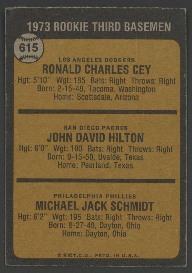 Ron Cey / John Hilton / Mike Schmidt 1973 Topps #615 Rookie Third Basemen RC