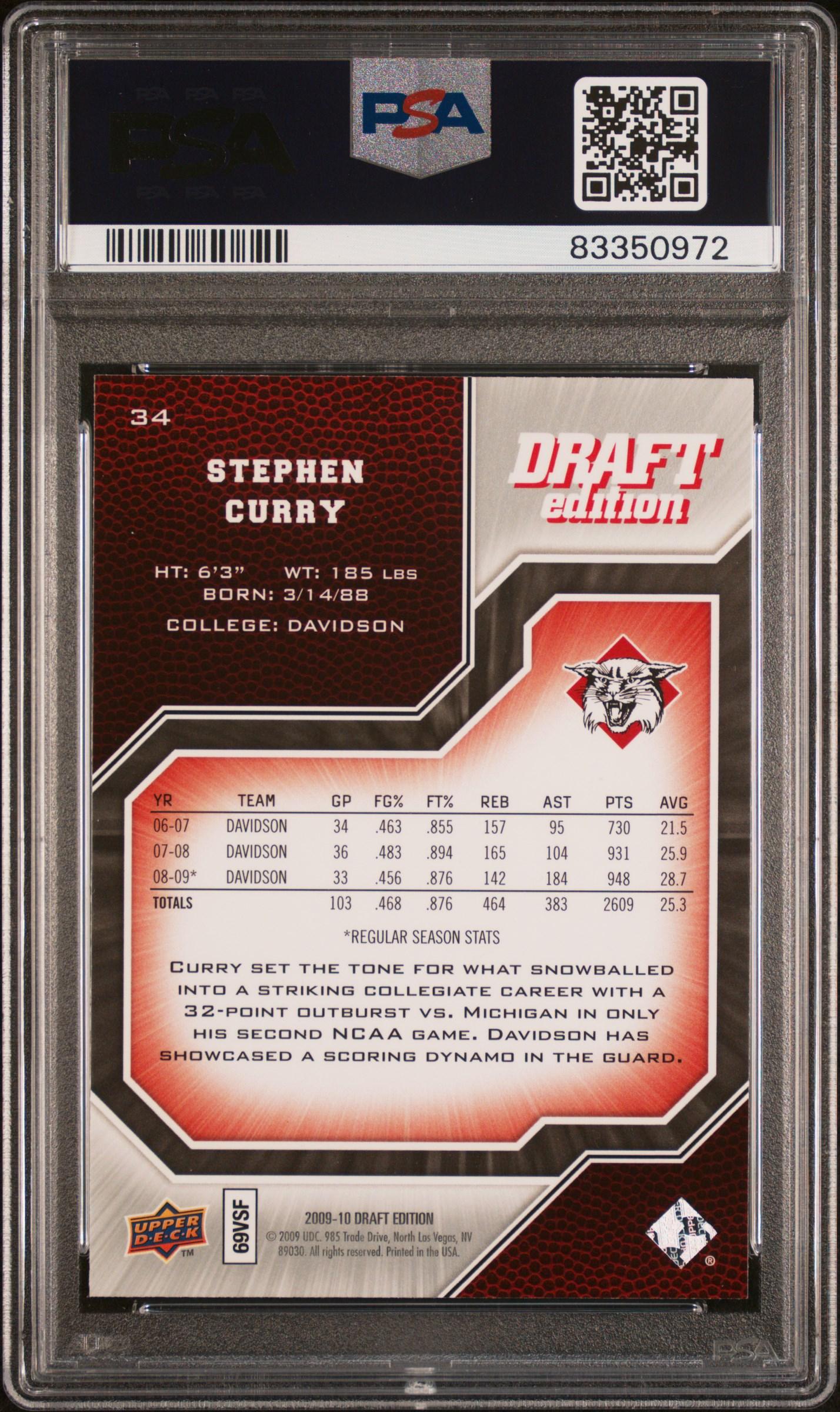 Stephen Curry 2009 Upper Deck Draft Edition #34 RC (PSA 10)