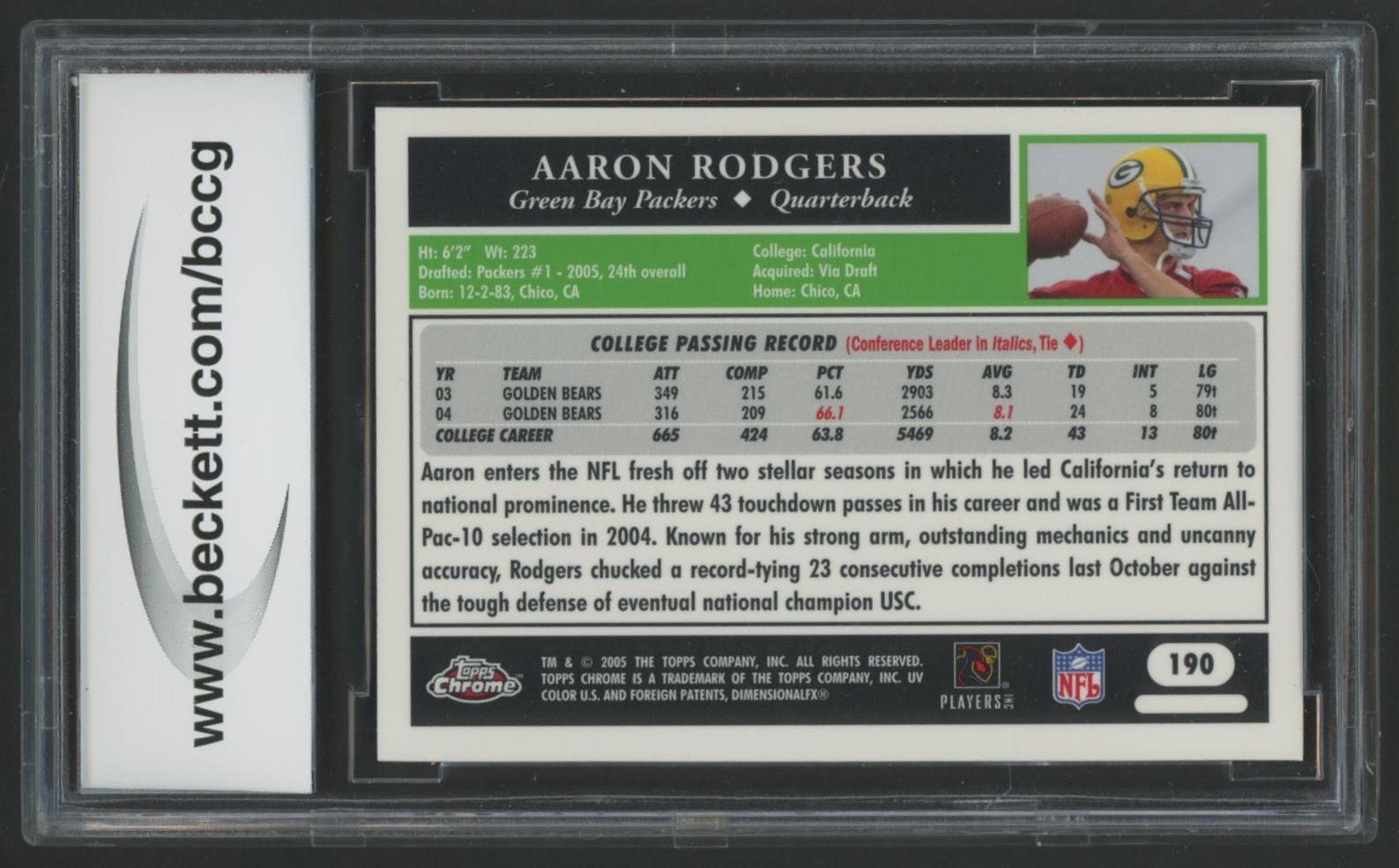 Aaron Rodgers 2005 Topps Chrome #190 RC (BCCG 10)