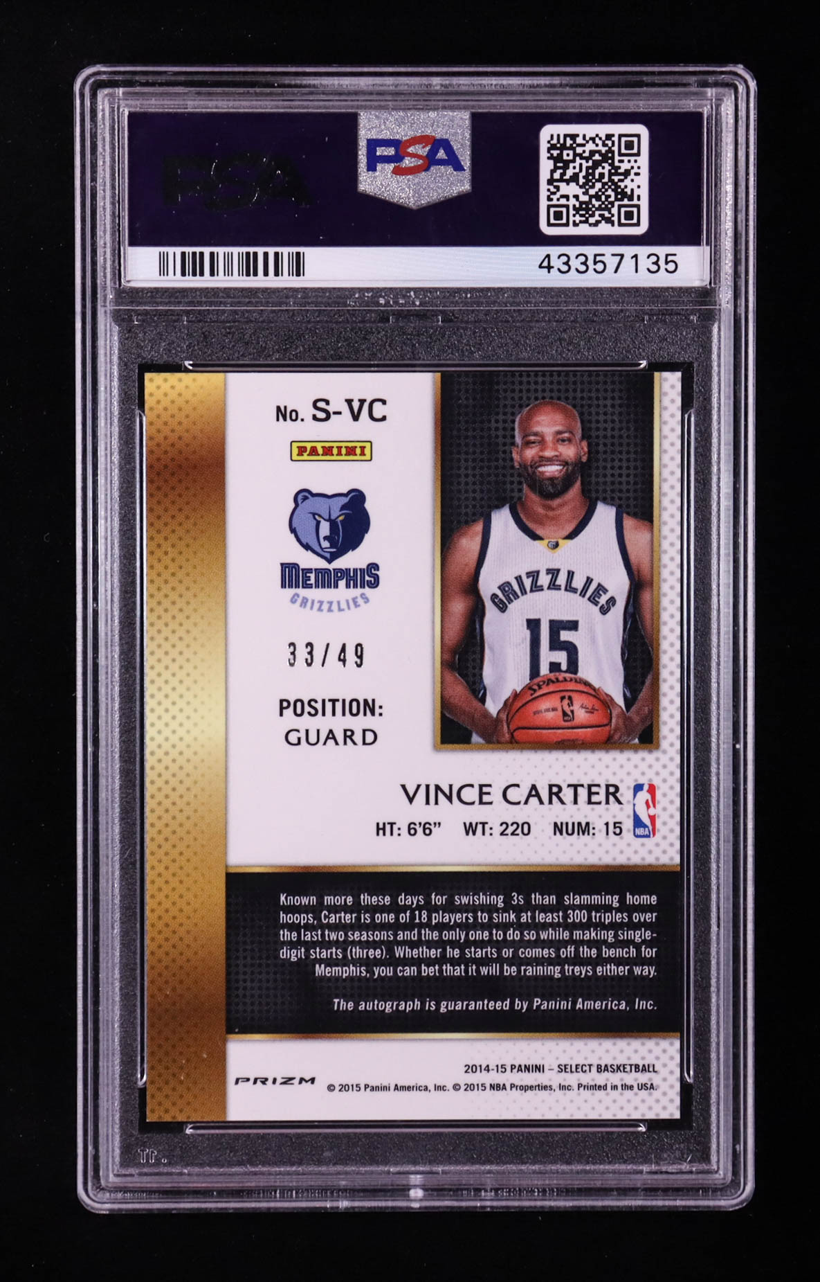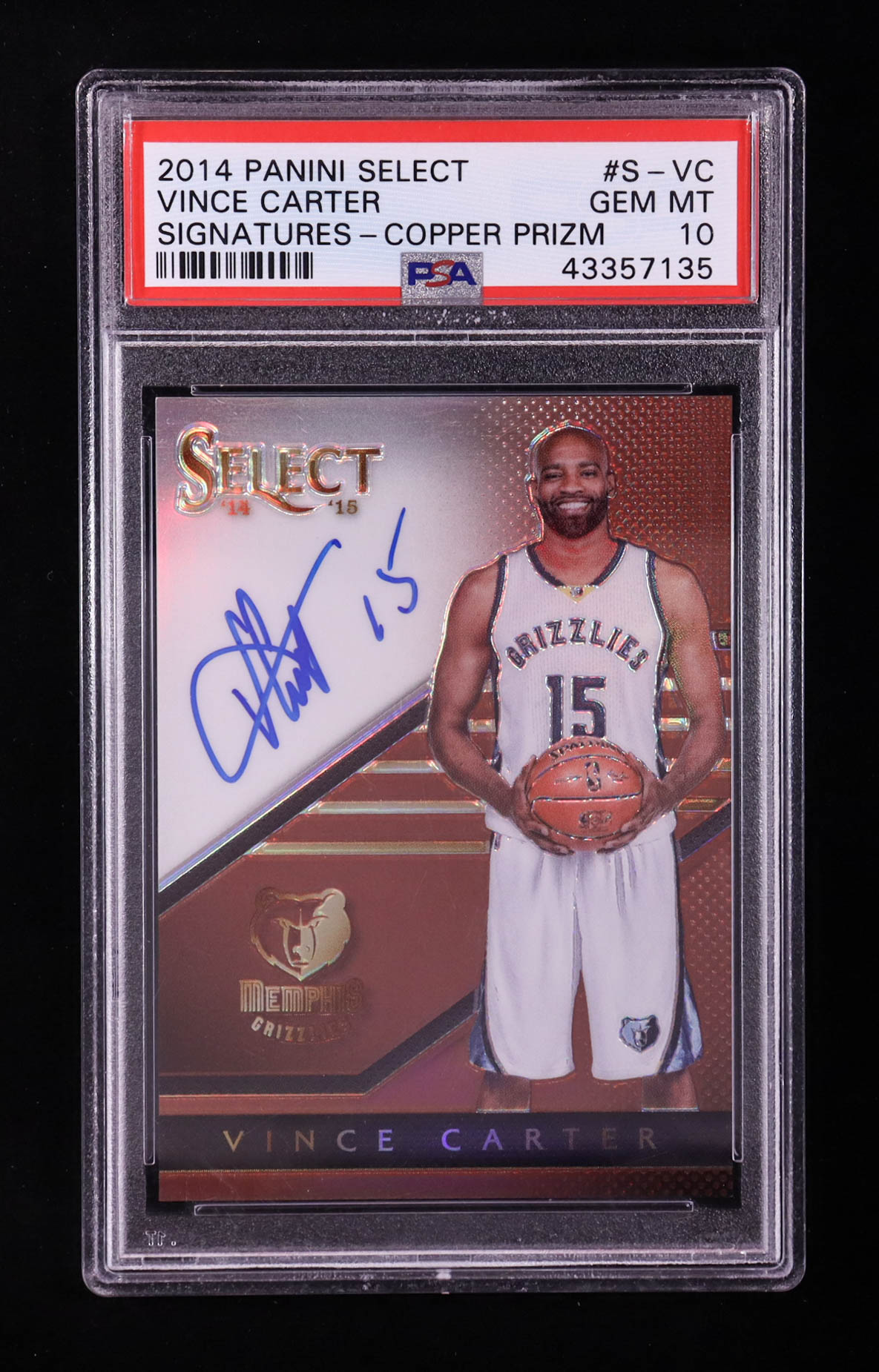 Vince Carter 2014-15 Select Signatures Prizms Copper #14 #33/49 (PSA 10)