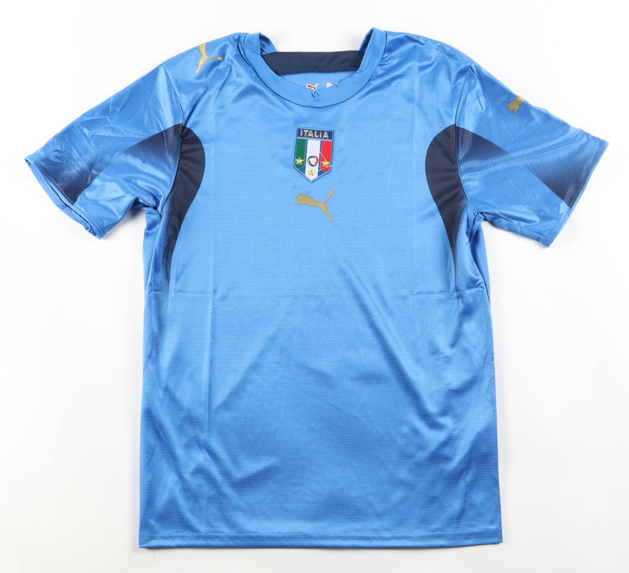 Puma authentic jersey with everything sewn and pressed on, size M. Hand-signed by Fabio Cannavaro (Italy National Football Team).