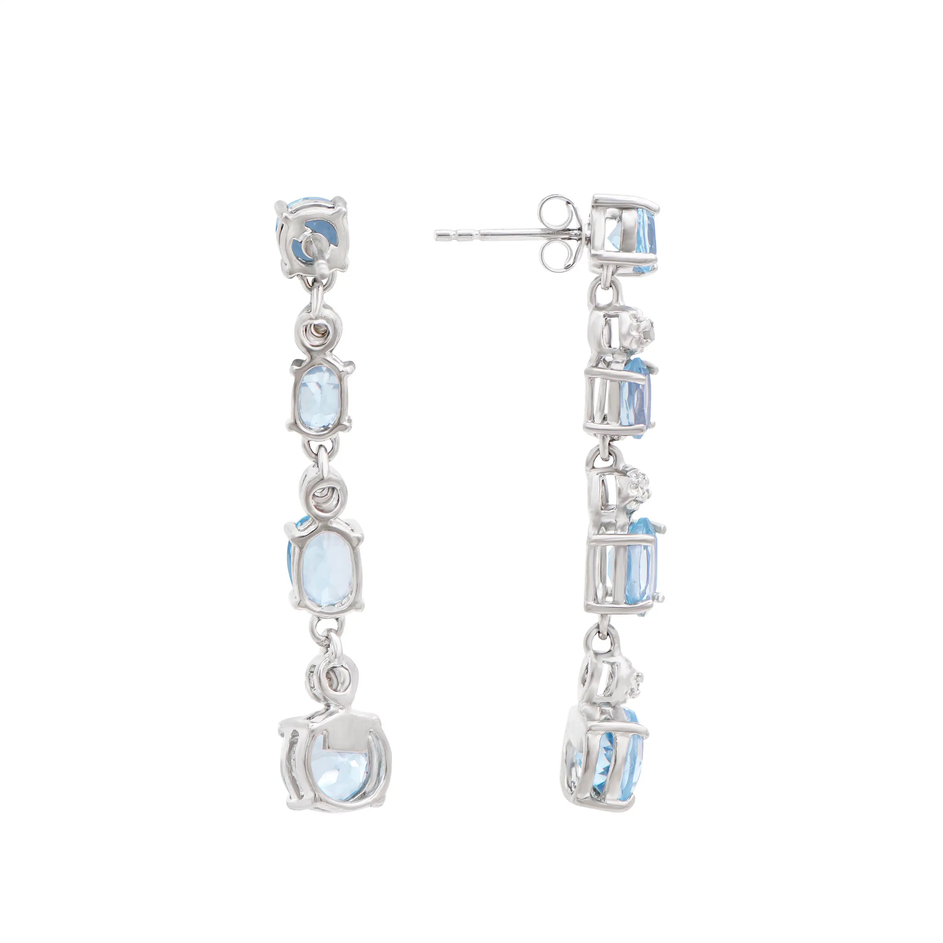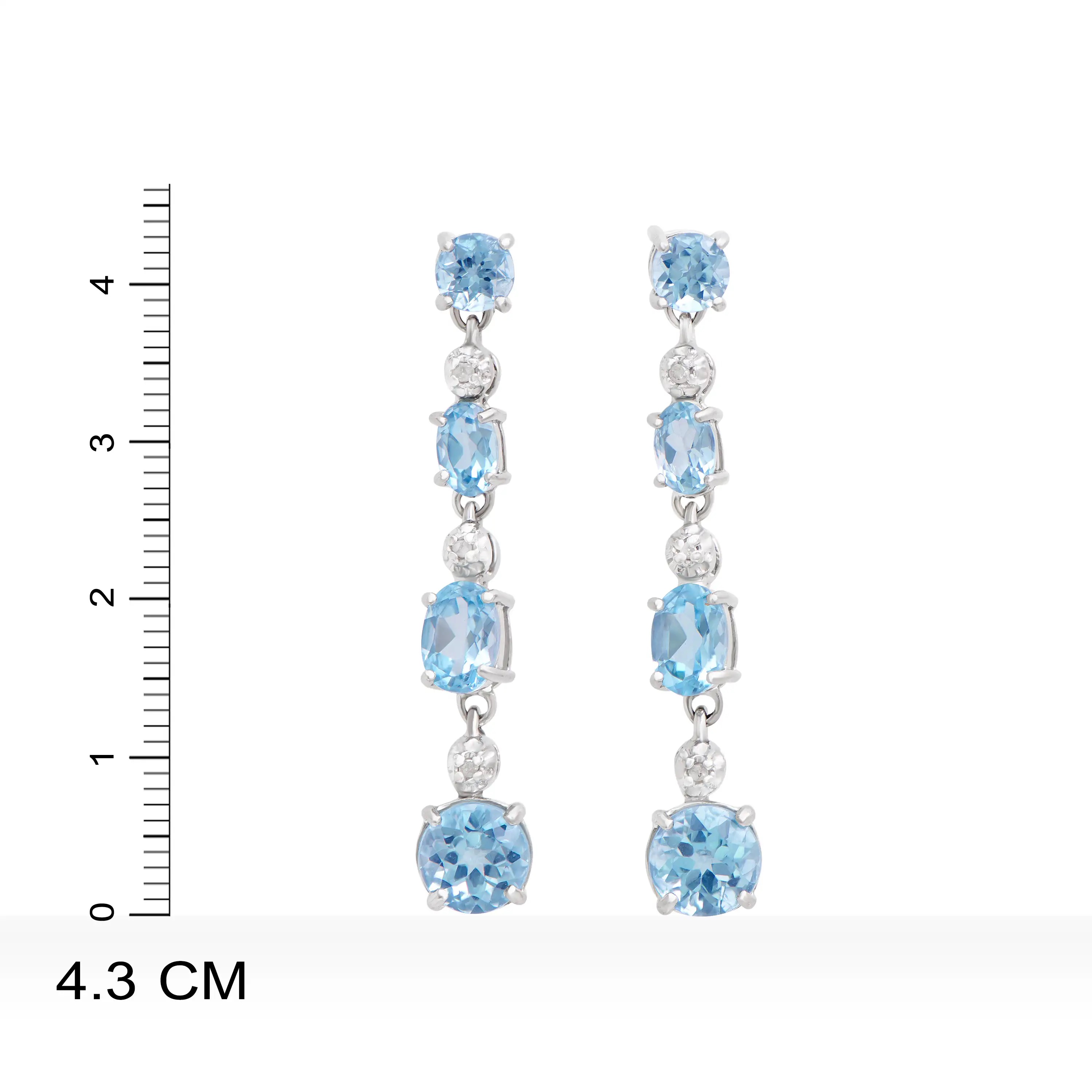 7.16 CTW Natural Blue Topaz & Diamonds Rhodium Plated Designer Earrings (6.07 grams) Contains: