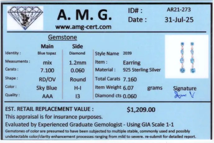 7.16 CTW Natural Blue Topaz & Diamonds Rhodium Plated Designer Earrings | Estimated Retail Value: $1,209 (AMG)