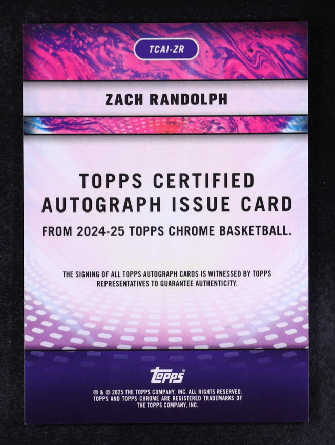 Zach Randolph 2024-25 Topps Chrome Certified Autograph Issue #TCAIZR