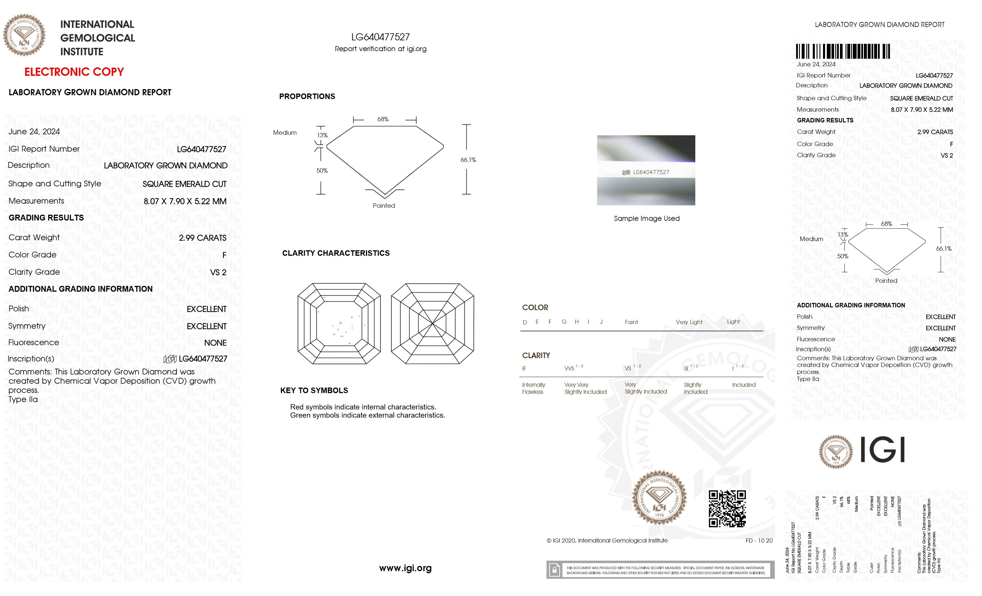 2.99 Carats Lab Grown Diamond Loose F, VS2 | Estimated Retail Value: $4,200 (UGL & IGI Certs)