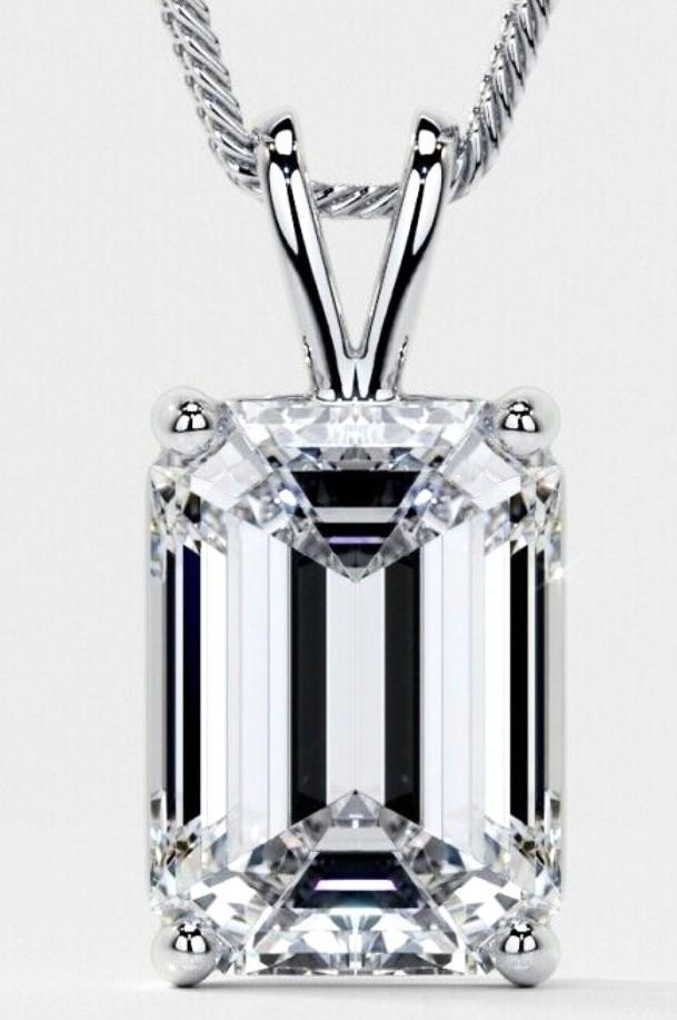 14kt Gold 5.09 Carats Lab Grown Diamond Pendant F, VS1 | Emerald Cut | $10,000 Estimated Retail Value (UGL & IGI Certs) | Brand New